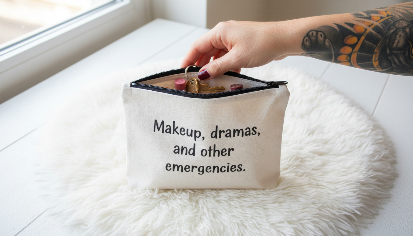 Pochette ironica personalizzata con frasi reali e sarcastiche. Elegante, unica e perfetta per contenere tutto ciò che ti rappresenta davvero.